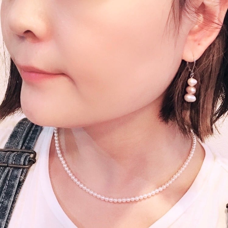照りの良い淡水真珠のナチュラルピンクを使用したピアス。