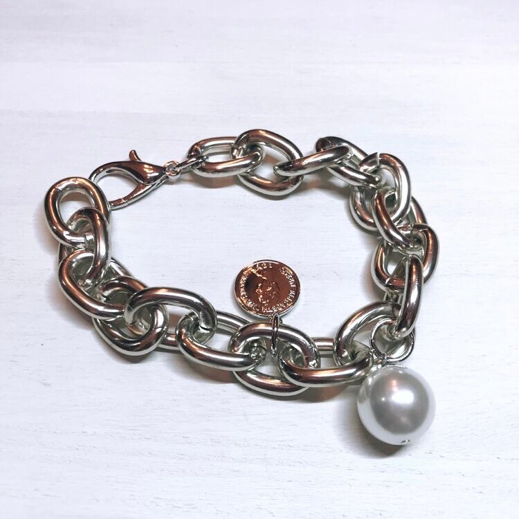 大体19ー20cmあたりで着用しております。チェーン3〜4コマ目でひっかけております。(写真参照)