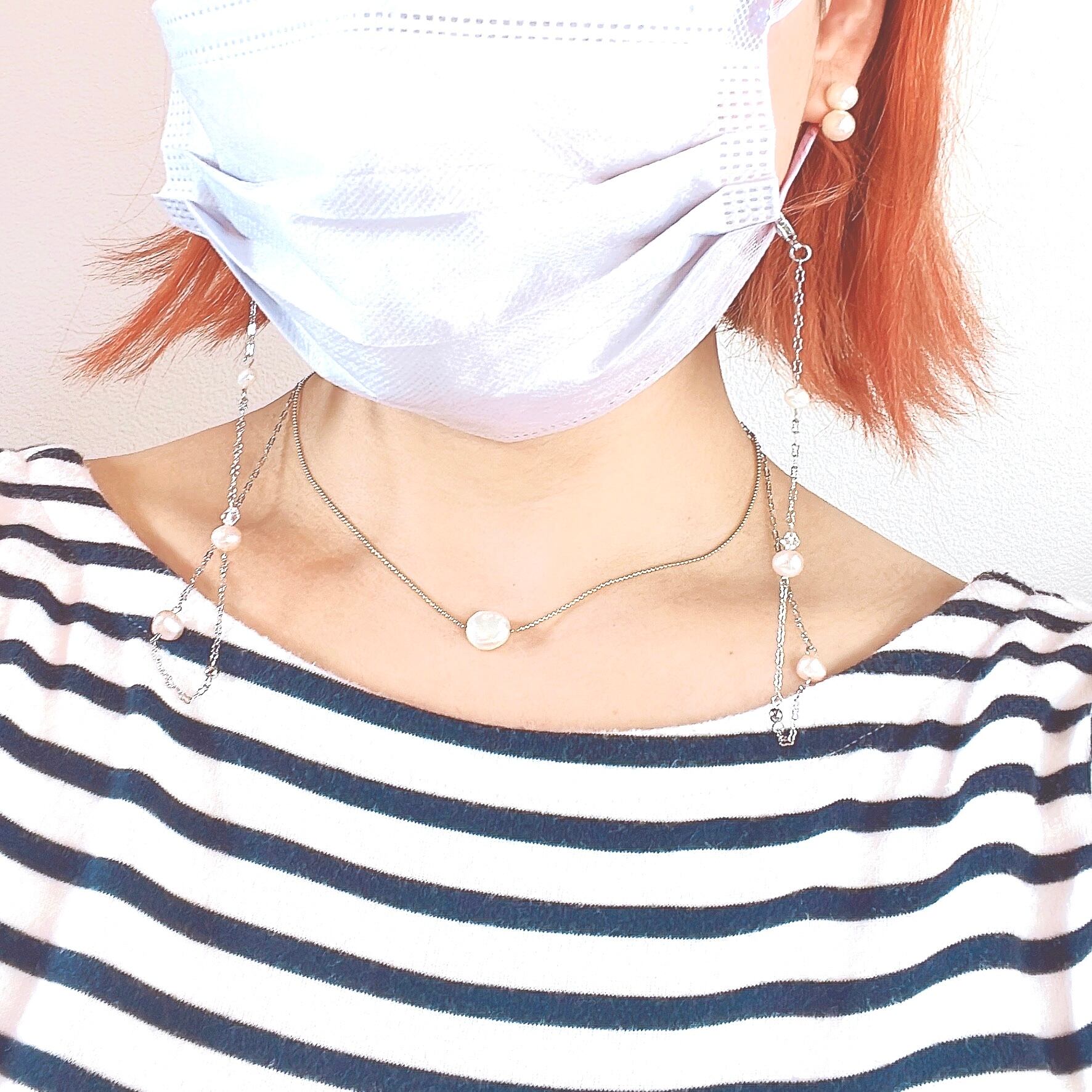マスクもまだまだ室内では必須のお店も多いので、マスクチェーンがついてると便利ですし、カバンの中で探す手間もなくなり、外で少し外すときなど衛生的です!